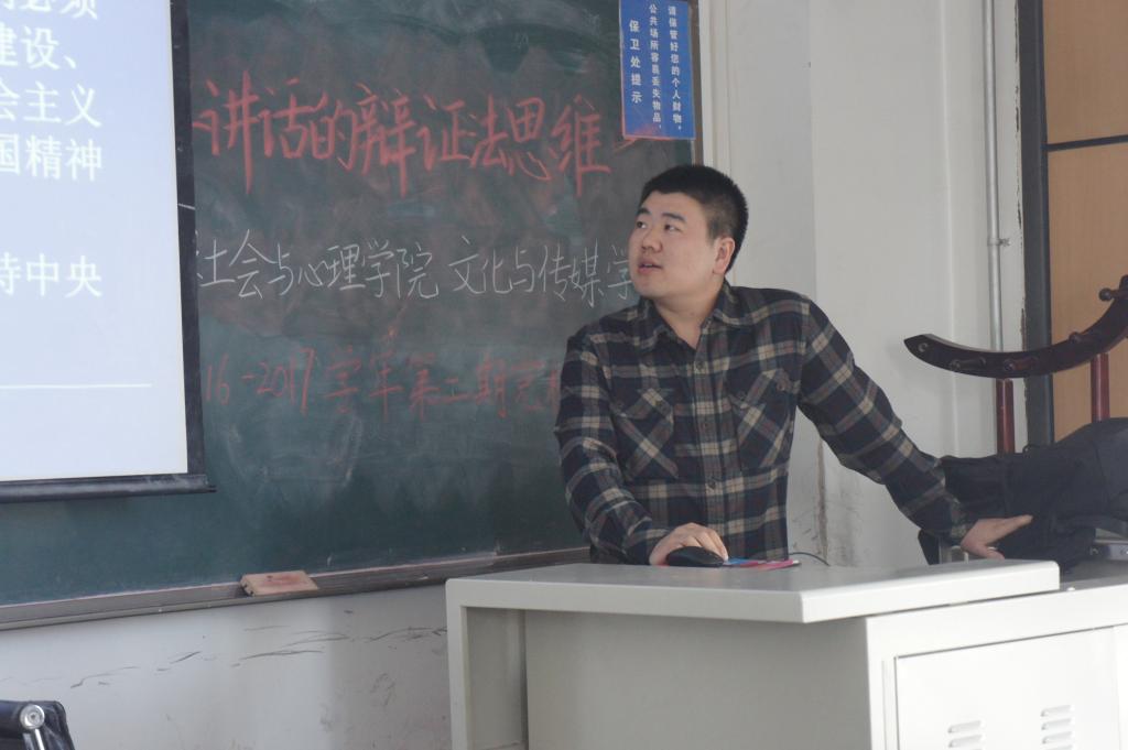 为深入推进“两学一做”学习教育,激励同学们坚定理想信念、加强党性修养、不断追求先进,4月26日,BB贝博艾弗森官方网站党委组织2016—2017学年第二学期党校入党积极分子在主教301聆听了马克思主义学院董良杰老师作以“习近平总书记系列重要讲话的辩证法思维方式”为主题的专题党课讲座。