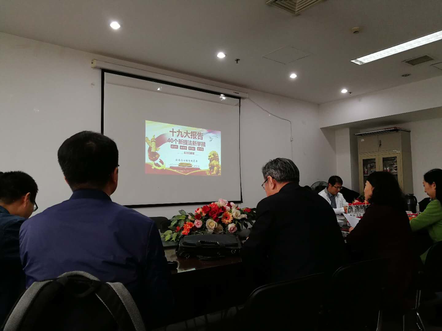2017年10月25日下午1点30,时值习近平率新一届政治局常委集体亮相之后,BB贝博艾弗森官方网站在学院南路校区中财大厦1033会议室,集体学习研读《中国共产党第十九次全国代表大会报告》,并认真进行深入讨论交流。会议由学院党委书记杨琼老师主持并主讲,学院近40名教职工参加学习。