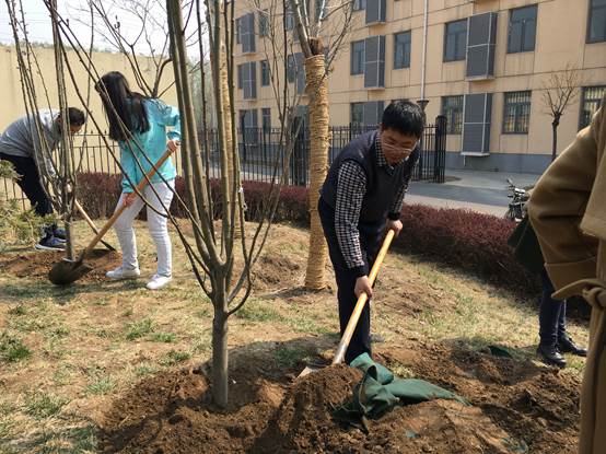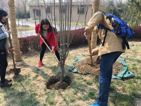 2017年3月29日,BB贝博艾弗森官方网站党委在丁香园2号楼北侧成功开展了“点亮绿色守护希望”党员奉献日主题志愿实践活动,为沙河校区捐赠9棵西府海棠树苗并亲手栽种。2013级本科生党支部书记胡博老师、2014级本科生党支部书记司晴老师以及学院各党支部党员代表及积极分子参加了本次植树活动。本次主题志愿实践活动的目的在于培养党员和积极分子的奉献意识,为沙河校区的环境美化做出贡献,同时也提高党支部成员热爱自然、珍爱生命的生态意识,学习体验绿色发展理念,增强党支部的活力和凝聚力。