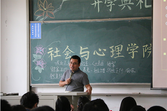 首先,BB贝博艾弗森官方网站党委书记杨琼老师致辞并宣布开学典礼正式开始。随后,学院辅导员司晴老师进行了新生点名,每位新生都起身向老师同学们致意,展现出了青春与朝气。点名完毕后,BB贝博艾弗森官方网站院长辛自强老师从专业前景和学生的自我要求两个角度进行了发言。辛院长首先向同学们抛出了一个宽泛的题目:我们国家的发展需要什么?新生积极作答,提供了若干各具特色的答案,互动十分热烈。辛院长从社会学系和心理学系的角度,阐述了他对当下社会的看法,重点论述了专业知识在社会经济领域的广泛应用,激励新生学以致用。随后,辛院长对新生提出了几点期望,要求新生先立德,再立才;严肃认真地对待学习,四年后成为一个合格的本科毕业生。