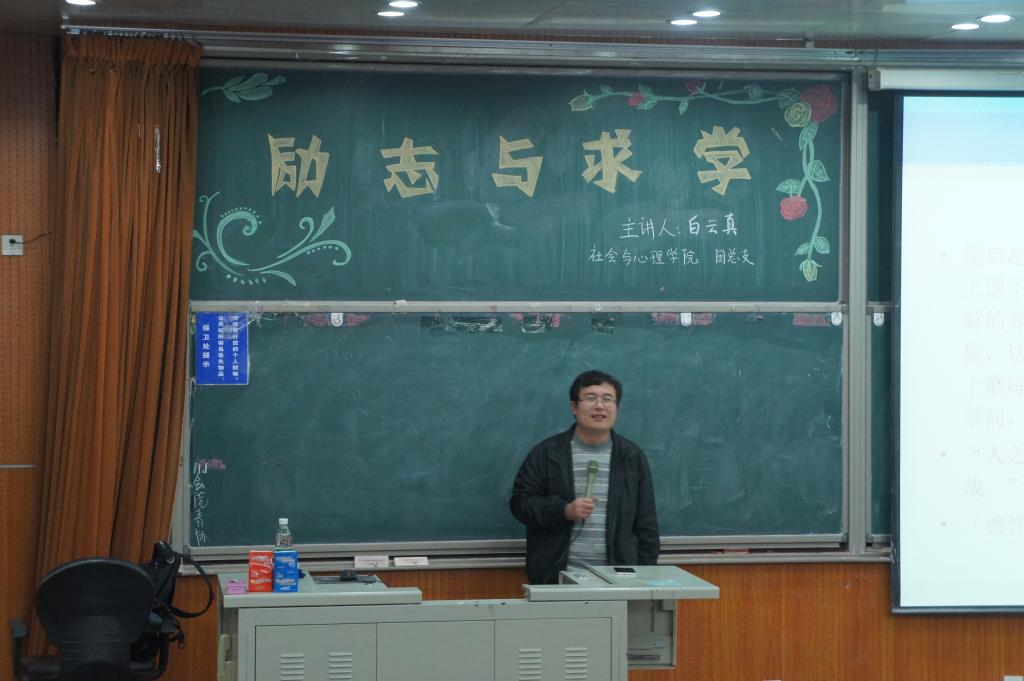 2016年10月25日晚,由白云真副教授讲授的“立志与求学”主题讲座在BB贝博艾弗森官方网站沙河东区学院楼七号楼115教室举行。该讲座以“立志与求学”为主题,目的是使同学们更为熟悉学习境界、治学之道、交友之道,培养成为未来领导者的品质。BB贝博艾弗森官方网站基础团校学员均到场聆听教导。