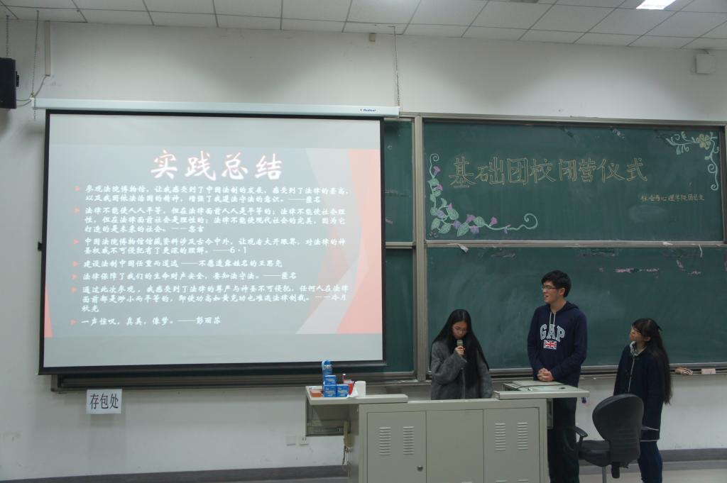 开校以来,从开营仪式到主题讲座,从知识竞赛到社会实践,从定向越野到闭营仪式,连续的团校活动给同学们普及了党团知识,加深了对党团的精神的理解,也让同学们对自身职责有了更深刻的了解,同学们一同成长,一同收获。今天,基础团校落下帷幕,从每个同学脸上灿烂的笑容可以看出,所有同学都在基础团校活动中收获颇多、心满意足,每个同学都用坚定的眼神表示他们将会继续发扬在基础团校中收获的精神。
