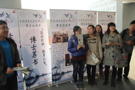 为营造我校学生浓厚的学习氛围,培养学生良好的读书习惯,社会发展学院主办,学校大学生文化素质教育基地、校图书馆协办的“读行天下”第三届读书月活动再掀我校读书热潮。本次读书月活动包含五项内容,分别为:名家谈读书系列讲座、“阅享人生”青年博士荐书活动、“青春活力,演绎经典”名著新编话剧大赛、“图书嘉年华”北京图书大厦图书展卖活动以及“智慧奉献社会”南七家小学志愿服务活动,目的在于使学生通过丰富多彩的活动认识阅读的意义,营造阅读的氛围,交流阅读的感想,体会阅读的价值。
