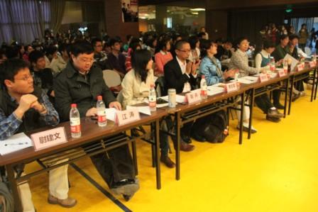 本次大赛邀请到校工会副主席顾文佳、文化与传媒学院党总支副书记李志军、中国金融发展研究院党总支副书记樊睿琳、校团委副书记耿卉、外国语学院林文静老师、政府管理学院江涛老师、社会发展学院尉建文老师担任评委,同时社会发展学院党总支书记姜涛、政府管理学院党总支副书记包英娟也出席了本次大赛。14:00整,BB贝博艾弗森官方网站第三届校园礼仪大赛决赛正式开始。六支参赛队伍依次上场,向观众展示团队和个人的风采。在才艺展示环节中,优雅端庄的交际舞,生动活泼的情景剧和独到精妙的礼仪知识讲解,无不展示了中财学子深厚的文化功底与人文素养。在比赛进行的同时,场内、场外观众也通过“人人状态墙”、微博、短信投票等多种方式积极与选手互动,踊跃留言,为自己支持的团队加油鼓劲。状态墙上的留言不断更新,比赛现场气氛活跃热烈。