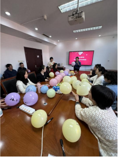 此次活动以游戏与分享座谈会的形式为主。活动由心理学隋晓阳老师主持,以“释放压力气球”的破冰游戏开场,大家通过吹气球、踩气球的形式释放压力,随后大家分享了生活中愉快的经历和轻松的时刻,舒解工作上的压力,促进身心健康,活动最后8分钟冥想体验更是让老师们在繁忙的工中回归一丝心灵上的平静。