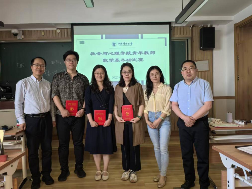 比赛分两组进行,社会学组和心理学组分别在主教213、图配楼417会议室进行比赛。学院共有6位青年教师参加,其中社会学系教师3位,心理学系教师3位。学院党委副书记窦东徽副教授、副院长张红川副教授、副院长王建民教授等学院领导以及各系系主任作为比赛评委,全程参加和观摩了比赛。