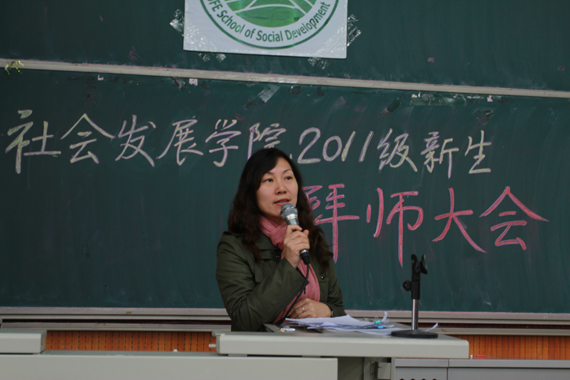 随后,2011级心理班郑哲同学作为新生代表发言,表达了对于学院全体教师的由衷的感谢。最后,姜涛书记致辞,对新生们表达了的殷切希望及对社会发展学院未来发展的美好祝福。