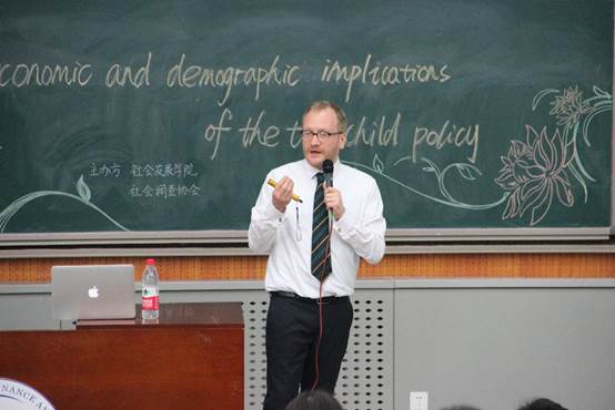 3月16日下午,牛津大学社会学系主任Stuart Gietel-Baste教授以“中国二胎政策以及其经济和人口学意义”为题,在我校沙河校区学院4号楼107报告厅,为师生带来了一场精彩的讲座。本次讲座特别邀请亚洲人口学会副会长、中国人民大学人口与发展研究中心顾宝昌教授进行评论。来自各学院的200余名在校师生及全国妇联和卫计委的同志共同聆听了讲座。