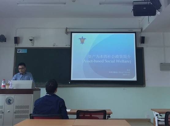 2018年5月22日上午,美国圣路易斯大学社会工作学院黄进副教授受BB贝博艾弗森官方网站邀请,为社会学研究生作专题讲座,主题是“资产为本的社会政策”。本次活动受到BB贝博艾弗森官方网站国际合作处引智项目支持。
