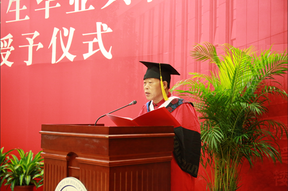 发言环节结束后,在庄重的音乐声中,院长、校学位评定委员会委员、学院学位评定委员会主席辛自强教授为每一位毕业生拨转流苏完成学位授予仪式,毕业生导师为学位获得者颁发了毕业证书和学位证书。辛自强院长亲切的笑容、温暖的握手和深情的祝福让每一位毕业生倍受感动和鼓舞,大家纷纷行以深深的鞠躬礼,向院长以及每一位培养导师,表示深深的敬意和衷心的感谢。