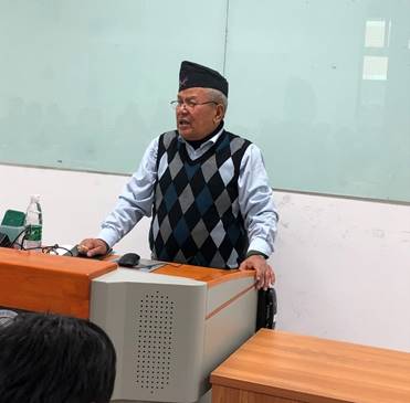 讲座开始,中国海外发展研究中心包胜勇主任首先向老师和同学们对G.M.Gurung教授进行了简单介绍。Ganesh Man Gurung是尼泊尔资深社会学家,著名社会活动家,巴纳拉斯印度大学博士,康奈尔大学富布莱特学者,日本基金会亚洲中心及挪威政策研究中心访问学者;曾任尼泊尔特里布文大学社会学和人类学系主任,社会学教授,尼泊尔国会议员;现任尼泊尔社会学学会主席,尼泊尔社会学和人类学会主席,尼泊尔国会顾问。包老师表示,非常欢迎G.M.Gurung来我校交流,中尼两国由上千年的友好交往史,当前仍在国际和地区事务中保持良好的沟通与合作,G.M.Gurung教授将帮助我们更好、更全面、更深刻的理解尼泊尔。