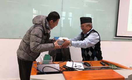 G.M.Gurung教授首先就尼泊尔社会的基本情况向大家做了介绍,这也是尼泊尔政治、经济、文化发展的基础。在此基础上,介绍了尼泊尔的种姓制度的社会表现和对人们生活的影响,并且总结出了种姓制度的一些特点。他认为尼泊尔是一个拥有不同种姓和种族群体的美丽花园,种姓制度造成的二元划分和对立导致了一系列社会问题,这种制度鼓励人们只考虑他/她的社区,缺乏国家视野。为了国家的发展,尼泊尔需要做到种姓和种族之间的和谐,目前,尼泊尔的新宪法也在为这一目标而做着努力。讲座内容结束后,G.M.Gurung教授向BB贝博艾弗森官方网站海外发展研究中心捐赠图书,包胜勇老师代表中心接受了赠书,并表示衷心的感谢。