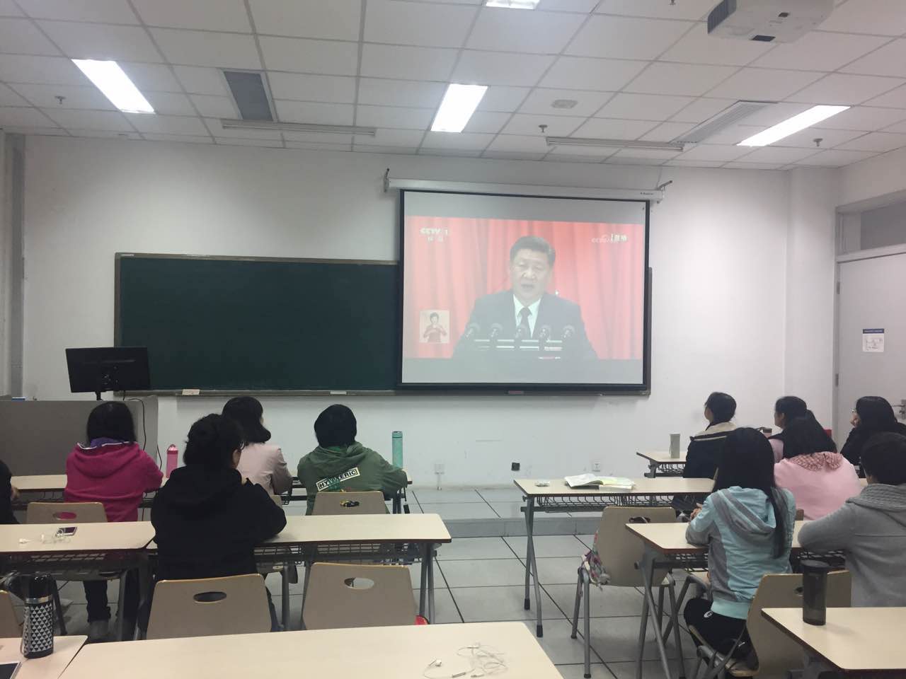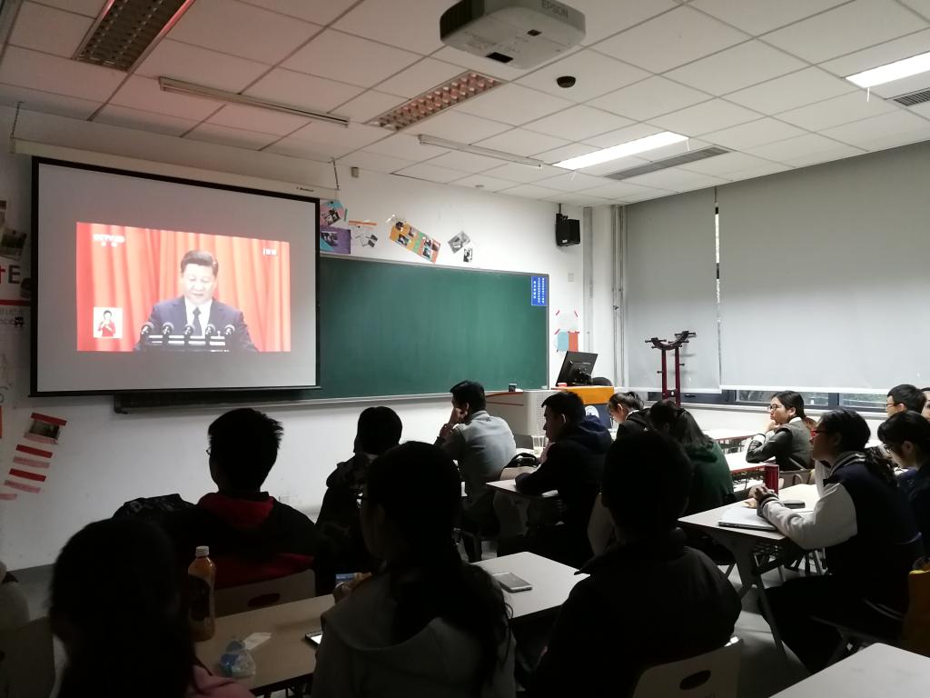 同时,研究生党支部也相聚于学院4号楼二楼观看了十九大开幕会,聆听习主席的讲话。