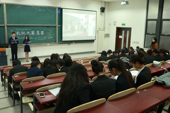 经过两轮的紧张角逐,大赛进入了有奖问答环节,以几道趣味性的礼仪问题,调和了紧张的气氛。