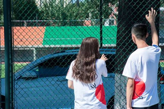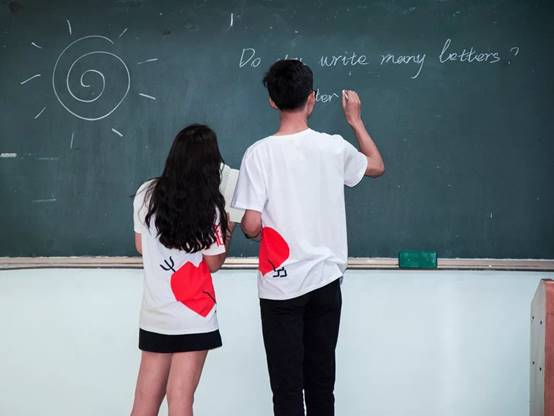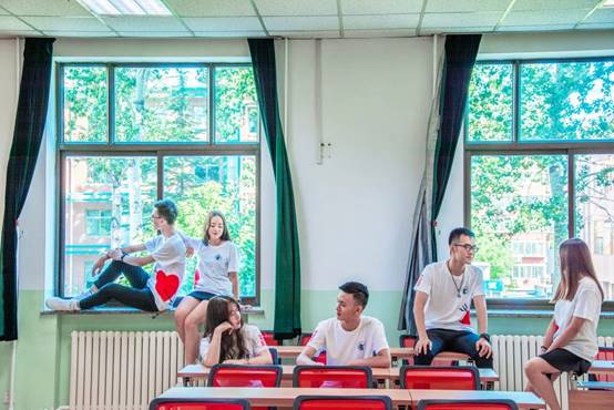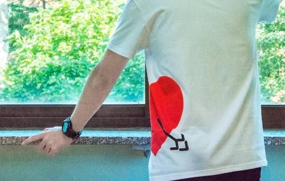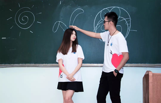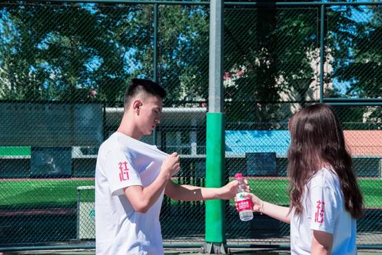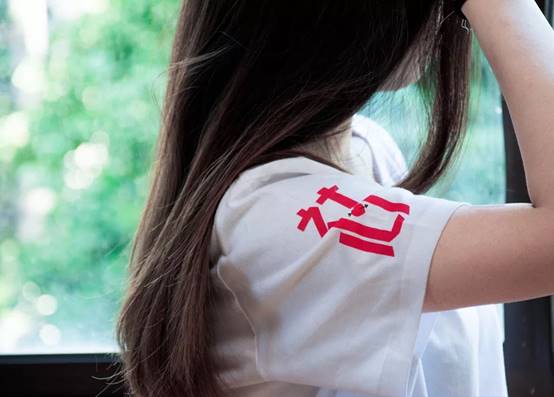 因为社心的谐音为“射心”,故将男生女生的衣服设计成恰可以拼成“射心”的形状,且爱心的的箭头为“众”字,象征社会学,箭尾为心理学的希腊文首字母标志,象征心理学。衣服袖口印有社心的logo。整件衣服别具匠心,创意满分,红色的主体颜色活泼明亮,健康向上,充分体现了社心精神。