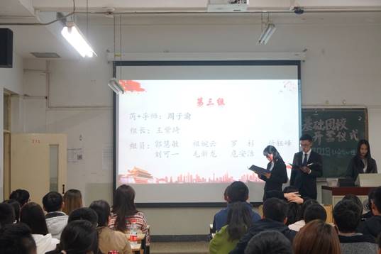 首先,由主持人上场宣布仪式开始,并介绍了到场领导及老师。她们是团委书记胡博老师、团委副书记和17级辅导员陈璇老师、党务干事和16级及18级辅导员冯丹老师。此外,还有BB贝博艾弗森官方网站学生会主席崔雨芳学姐、副主席彭旭含学姐、第一团副刘桂槟学长、第二团副刘筱萌学姐,以及社会18-1班芮+导师周子渝学姐、班助童锐学姐及张琦娉学姐。
