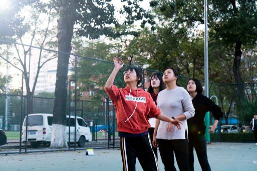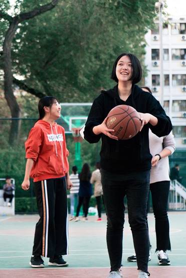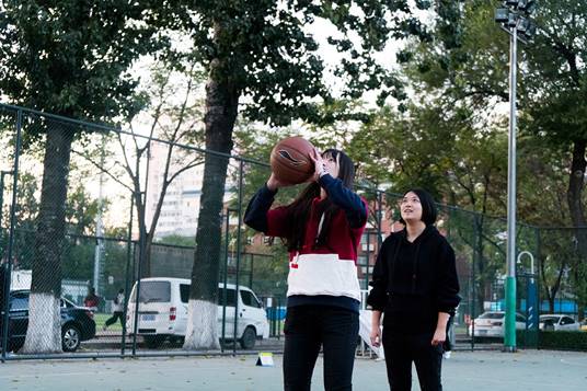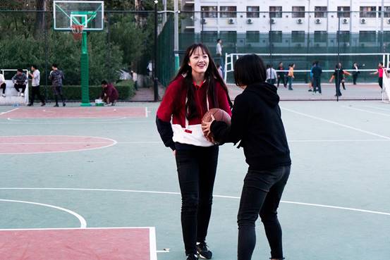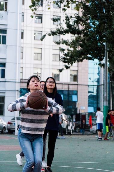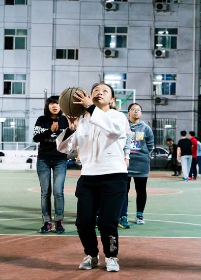 中场休息时,双方女生也加入这场比赛,纷纷开始投篮。