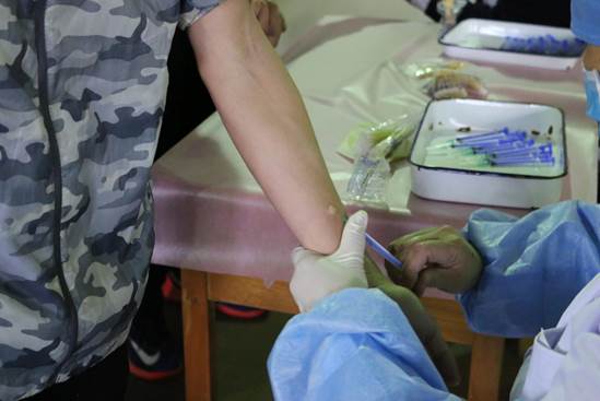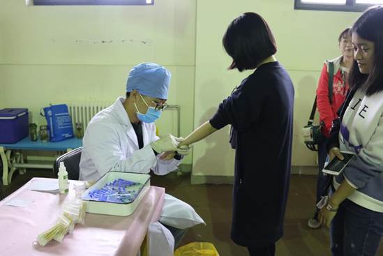 在整个过程中,医生们专注认真,细心地为每一位同学注射,并亲切友好地跟大家交谈,缓解部分同学的紧张情绪。