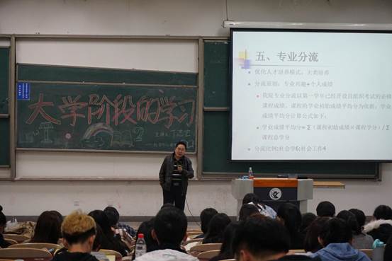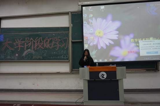 紧接着,丁老师提出如何学习这个问题:于课堂学习,老师警示我们不能挂科,不能把希望放在补考上;于课外学习,老师建议我们要多参与寒暑假实践活动,参与创新创业活动等。随后丁老师介绍了大学一、二、三、四年级不同阶段的学习规划,建议我们多利用图书馆,并抓好英语和数学两门学科。