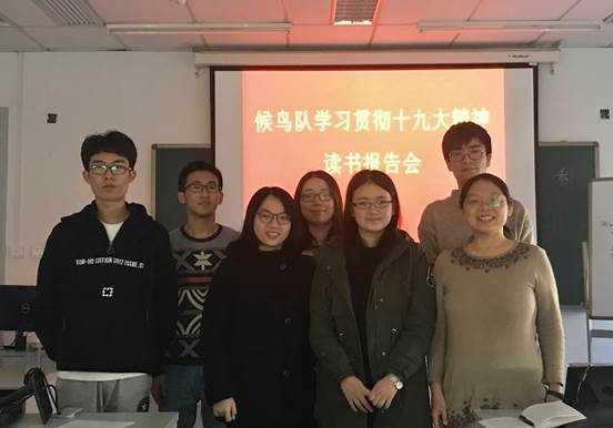 同学们以党的十九大精神为基础,搜集大量的相关资料,结合自己亲身经历和对社会事件的看法,各自发表了对于报告的见解,彼此交流思想。张亚锋同学由“站起来、富起来和强起来”联想到毛泽东、邓小平和习近平三位国家领导人的伟大功绩。吴楠同学以“德艺双馨名家大师”为楷模,明确自己的发展方向。彭博同学分享了今年暑假在新疆看到“各民族像石榴籽一样紧紧抱在一起”标语和场景的心得感悟。王鑫同学就“深入开展爱国卫生运动”提出了疑惑和见解。陈翰琪同学以家乡生态事件为例,阐述了她对“加快生态文明体制改革,建设美丽中国”的认识与领悟。王燕同学以“听党指挥、能打胜仗、作风优良”的强军目标为准绳,谈了大学生自我修炼的目标。原源同学解释了“人类命运共同体”的内涵和外延,讲述了其来源和发展,论述了对自己的启发。师生们在热烈、祥和、愉悦的氛围中结束了此次学习讨论。