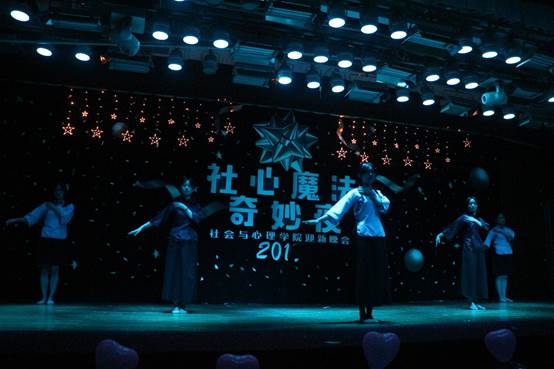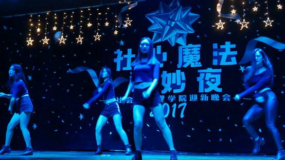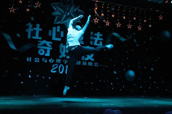 心理17小仙女柔婉的开场舞让热烈的全场屏住了呼吸,五位社会17-1小仙女以不一样的语言同样地抒情,成为晚会的一股清流。