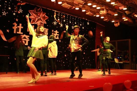 为我们揭开了魔法夜帷幕的是社会14和投资17研一的乌汉图学长和和子渊学长。伴着阵阵尖叫,他们带感的舞姿让我们发现西装革履时髦而俏皮的一面。