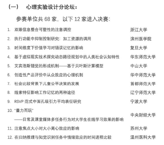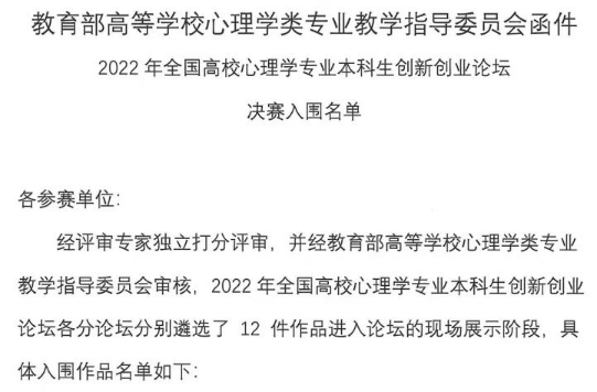 同时,也祝愿入围本次全国高校心理学专业本科生创新创业论坛决赛的团队能够在比赛中取得优异的成绩!