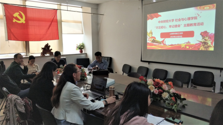 2019年10月9日下午,BB贝博艾弗森官方网站心理学系教工党支部召开“不忘初心、牢记使命”主题教育暨师德师风学习交流会。会议由党支部书记苑媛副教授主持,心理系教工党支部全体成员参加了会议。