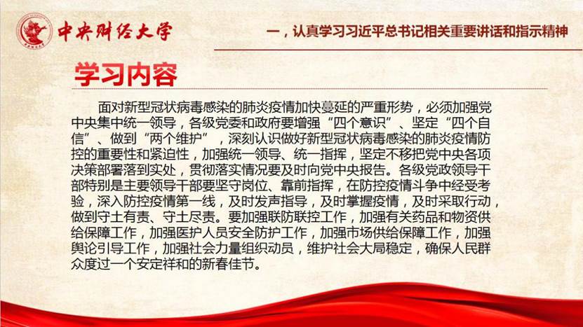 主题活动共分为四个部分进行,首先,冯丹老师向大家讲解了习近平总书记的相关讲话内容,提高大家的思想觉悟和防疫意识;其次冯丹老师鼓励大家认真学习疫情防控的政策措施、防护知识,包括正确使用口罩的方法、哪些情况下需要洗手、怎样在家中居家防护等,对党支部同志们的生活现状起到很大的帮助作用。