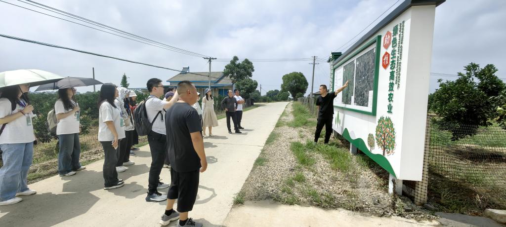 6月30日,调研团队走访了枝江市董市镇曹店村和草台村,发现农村新产业模式和新技术具有巨大潜力。曹店村依托脐橙种植和亚行项目道路,建立A级农业研学园,实现村民人均年收入破3万元。草台村依托亚行项目修建的水渠和得天独厚的农业条件,发展如红心猕猴桃等高价值作物的种植,实现了种植园所生产的红心猕猴桃市面上可以卖到十几块钱一个,且销路畅通,创收颇丰。这些成功案例充分展现了当地资源与基建项目的结合,为农村带来了一片新的繁荣光景。