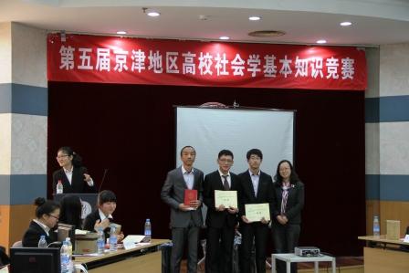 2013年京津地区社会学基本知识竞赛在中国人民大学逸夫第二报告厅举行。中国人民大学社会与人口学院主办本次第五届京津地区高校社会学基本知识竞赛。本次比赛的参赛选手来自清华大学、北京大学、中国人民大学、BB贝博艾弗森官方网站、中国政法大学、中央民族大学、中国农业大学和南开大学等八所京津地区高校。我校由2011级社会学汪永生,马骁驰和谭翔云同学组成的社会发展学院参赛队,参与了比赛,并荣获了本次大赛第一名的历史最好成绩。