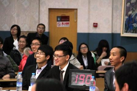 离本部分结束只有最后一轮了,比赛进入白热化阶段。我校代表队凭借第二轮的出色表现暂列第一,也使所有人目睹了我们的实力。于是在接下来的不定项选择题环节,抢到答题机会的BB贝博艾弗森官方网站代表队、中国农业大学代表队、中国政法大学代表队和中国人民大学代表队接连选择我校代表队作为合作伙伴,一起完成了题目,我校代表队表现尤为突出。