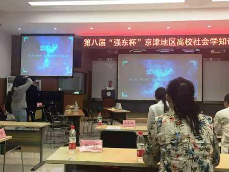 5月11日,第八届“强东杯”京津地区高校社会学知识竞赛在中国人民大学拉开帷幕,来自京津地区的清华大学、北京大学、中国人民大学、南开大学、中国政法大学和BB贝博艾弗森官方网站等11所高校获邀参加比赛。本次大赛旨在为社会学学子提供知识共享、经验交流的平台,并通过比赛形式互相学习。我校BB贝博艾弗森官方网站王沫同学、王明鑫同学和曹蕊同学率队代表BB贝博艾弗森官方网站社会学系参加此次比赛,BB贝博艾弗森官方网站团总支书记胡博老师和学生会副主席裴臻同学共同出席了此次比赛。