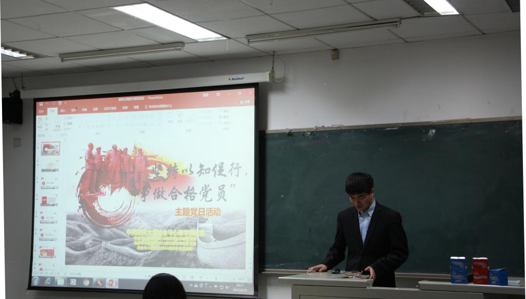 为进一步贯彻落实党的十八大和十八届三中、四中、五中、六中全会精神,深入推进“两学一做”学习教育常态化制度化, 同时为庆祝中国共产党成立96周年,教育引导党员坚定信念、勇于担当,2017年6月24日晚,BB贝博艾弗森官方网站党委积极组织各党支部共同开展了“坚持以知促行,争做合格党员”主题党日活动。参与本次活动的有BB贝博艾弗森官方网站2014级本科生党支部、BB贝博艾弗森官方网站2016级研究生学硕党支部以及BB贝博艾弗森官方网站2016级研究生专硕党支部,此外还有来自各个班级的积极分子和积极向党组织靠拢的群众。本次活动的主持人是来自2014级本科生党支部的沙金地同志,他向大家介绍了本次活动对于一名党员的意义,慷慨激昂的开场陈词引得大家掌声阵阵,活动也在掌声中正式拉开序幕。
