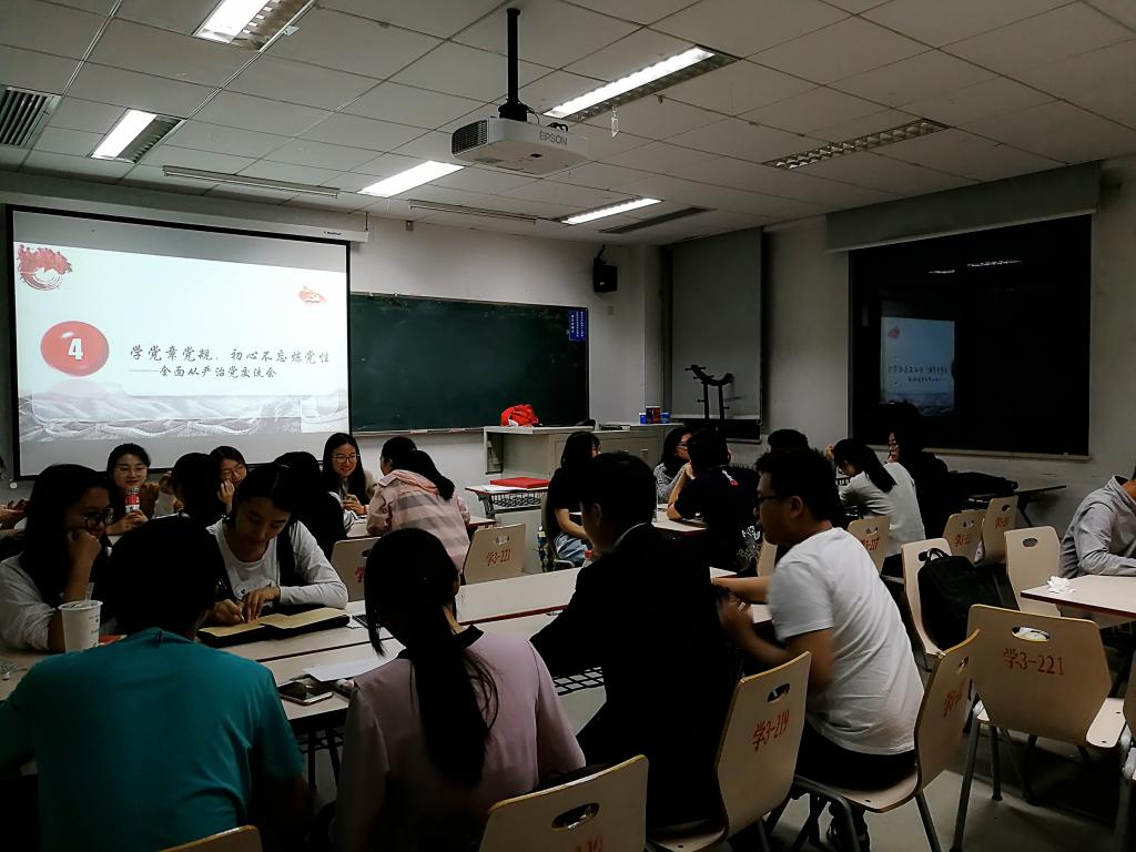 学党章党规,初心不忘炼党性。“全面从严治党”作为我党对每一位党员“高标准、严要求”的重要体现,从制度方面也做出了充分保障。在观看完纪录片之后,主持人沙金地带领大家学习了《中国共产党廉洁自律准则》,加深了大家对党章党规党纪的认识,有意识地增强个人的党性修养,以更严格的标准要求自己。现场同学随机分成五组,就全面从严治党这一主题开展深入交流,并由各组派出代表上台作总结发言。在交流过程中,在场同学都表示感触良多,展开了激烈的讨论:社会16的王思佳同学结合了家乡重庆市腐败治理的“薄熙来”案件和大家进行了更加深入的交流和探讨,“虽然薄熙来在此前政绩不错,但是事实告诉我们,一旦涉及到腐败,就没有丝毫的情面可言”;社工14的杨瑾泽同学结合影片谈到,《永远在路上》主要分为两面,一个是以习近平同志为核心的党中央大力推进反腐倡廉建设,打击腐败犯罪行为;二是党内的一部分立场不坚定的群体没有抵制住诱惑,触碰党纪国法的红线,最终受到严肃的处理。人心即是最大的政治,权力会带来相应的诱惑,所以一定要加强先进性建设,完善监督机制,从制度层面上打击腐败问题。因此,作为一名党员、入党积极分子以及积极向党组织靠拢的群众,更要从思想上坚定理想信念,自觉抵制腐败的诱惑。现场同学们的发言既表达了自己观看纪录片及学习《条例》的所思所感,也能具体结合自己家乡或身边一些反腐案例的所见所闻进行表述,体现了大家在“两学一做”学习教育中的思想深度,值得肯定。