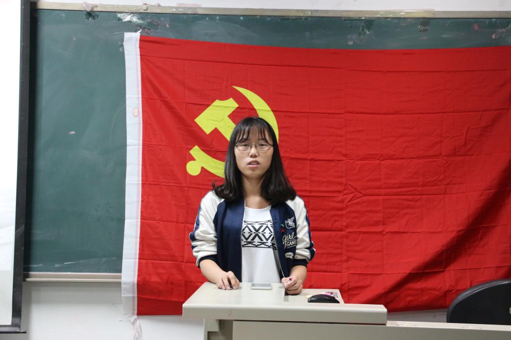 晚上7点,主题党日活动正式开始。第一个环节是老党员重温入党誓词活动。随着乐声庄严响起,2014级本科生党支部周艾佳同志领誓,全体党员重温了入党誓词。誓词重温,承诺未改,从大家笃定的眼神和铿锵的语调里,感受到了作为一名党员的承诺与担当。
