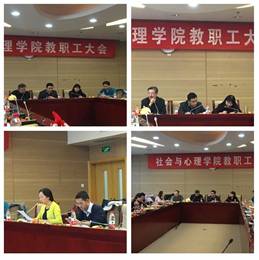2017111日下午,BB贝博艾弗森官方网站在学术会堂604召开第二届第二次教职工大会暨学科与专业建设研讨会,学院党委书记杨琼、辛自强院长、李国武、丁志宏和高霖宇三位副院长及学院30余名教职工参加了会议。