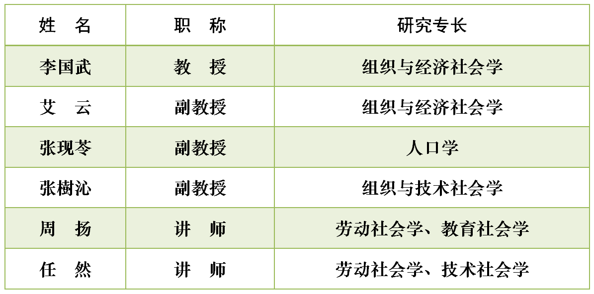 研究所所长:庄家炽副教授劳动社会学、经济社会学